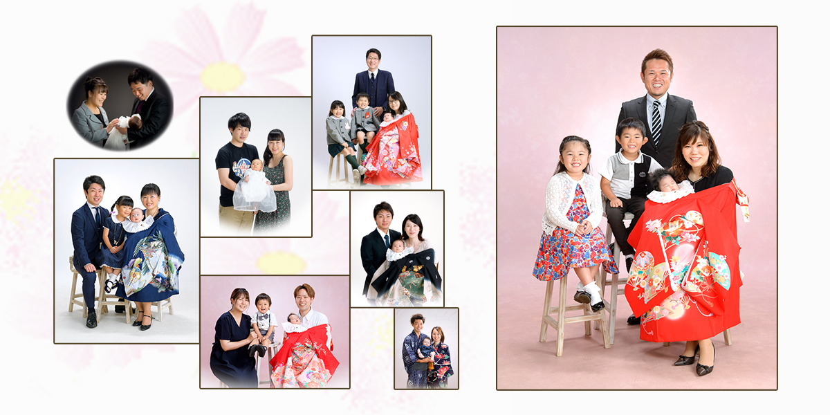 | お宮参りとは、その土地の氏神様に、生まれた子供の成長と健康をお祈りする行事です。 男の子は生後31日目、女の子は33日目(地方により 異なります。)に行ないます。 現在は形式にこだわらず、30日前後の穏やかな天候の日に行なったり、暑い夏や、寒い冬は避けても問題ありません。 また、氏神様が祭ってある神社ではなく、どこの神社でもいいとされています。 当館ではご出産のお祝いとして、赤ちゃんキャンペーンを実施しております。 赤ちゃんのお祝いのお写真は、データではなく、紙のお写真でぜひ残してあげてください。 |