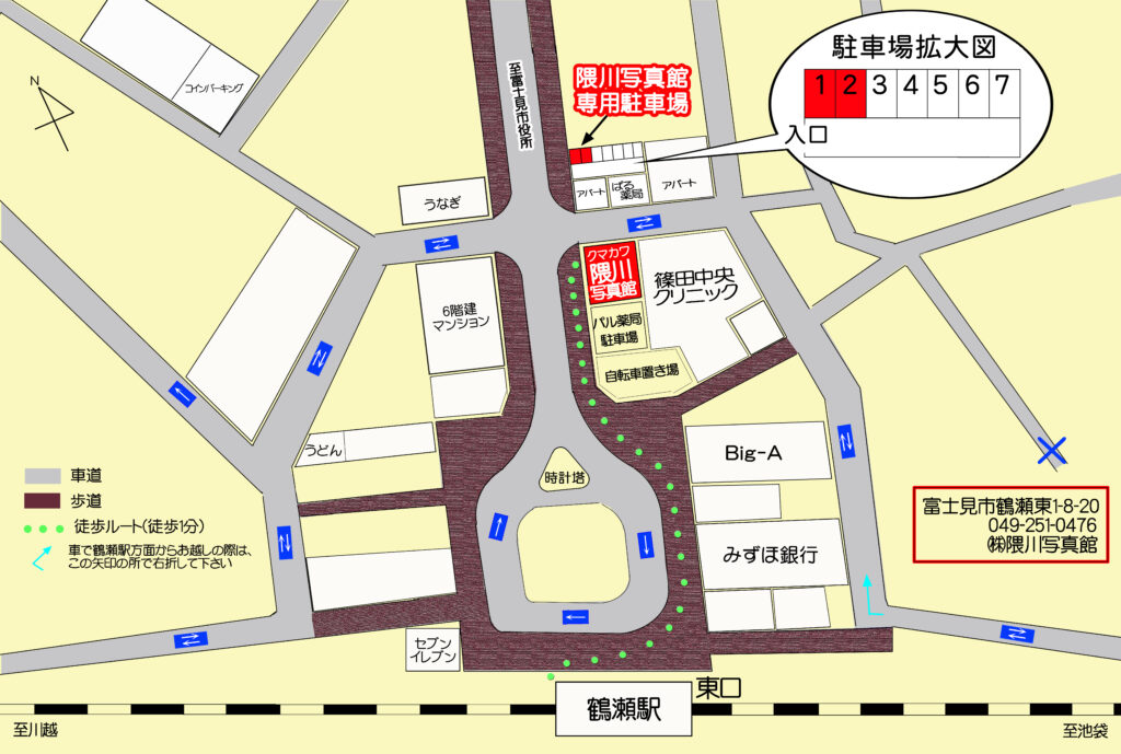 東武東上線鶴瀬駅東口より徒歩1分 東口の階段を降りましたら、右側へ進み、ロータリーに沿って歩いてください。Big-A(スーパー)→自転車置き場→パル薬局駐車場→当館(白い5階建ての5階部分がこげ茶色の建物)です。(^О^)/ |